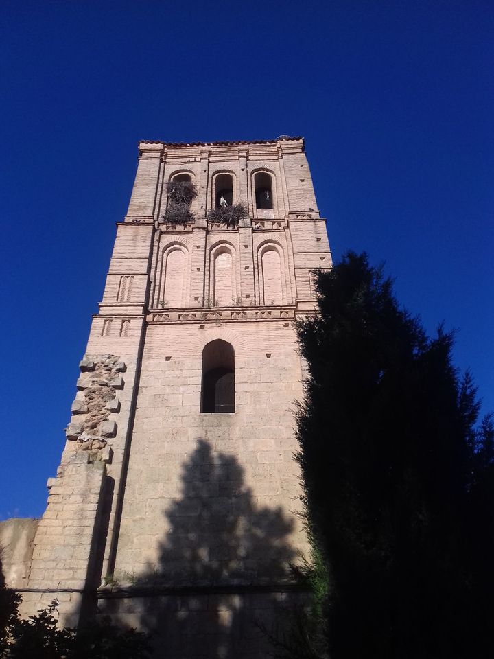 ?La torre es el único resto que queda en pie de la iglesia. Torre mudéjar con la parte inferior de sillería y la superior de ladrillo, obra de Juan de Escalante.